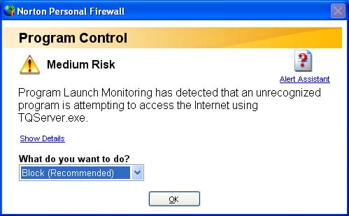 5) After the PC reboots and you have logged in, double click on the Typequick icon (red icon if you have Typequick Professional or green icon if you have Typequick For Students) to launch the program. One or more message boxes like the one below may pop up (the reason shown may differ depending on the firewall settings):