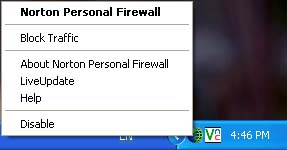 1) Right-click on the Norton green world icon and select the Norton Personal Firewall entry from the menu that appears