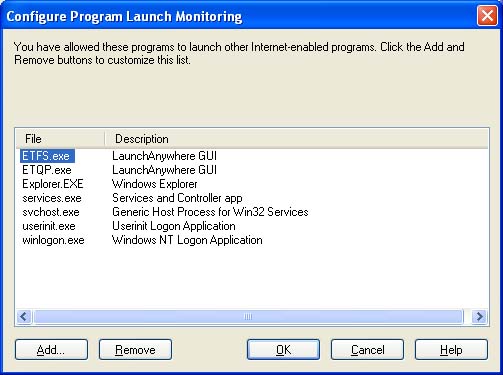 3) Select the Firewall tab. Make sure the Program Launch Monitor check box is ticked and press its Configure button.